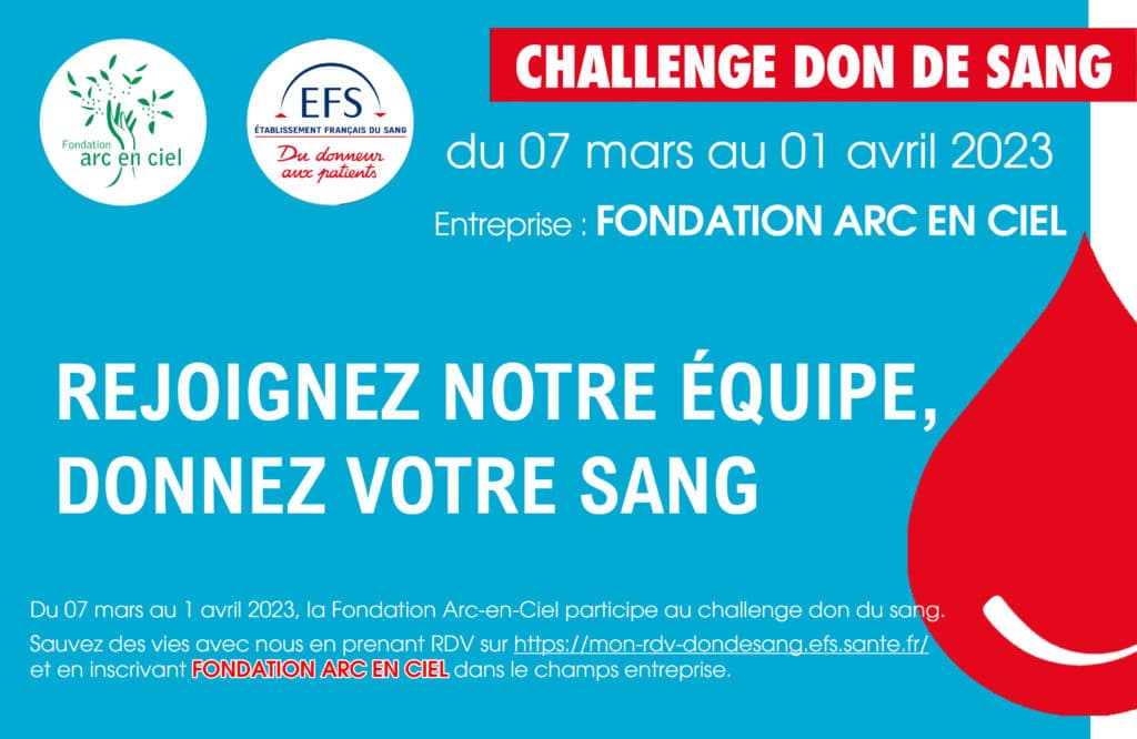 Après une belle participation en 2022 au challenge inter-organisme du Territoire de Belfort, La Fondation Arc-en-Ciel renouvèle sa participation au challenge du don du sang organisé par l’EFS du 7 mars au 1 avril 2023.
