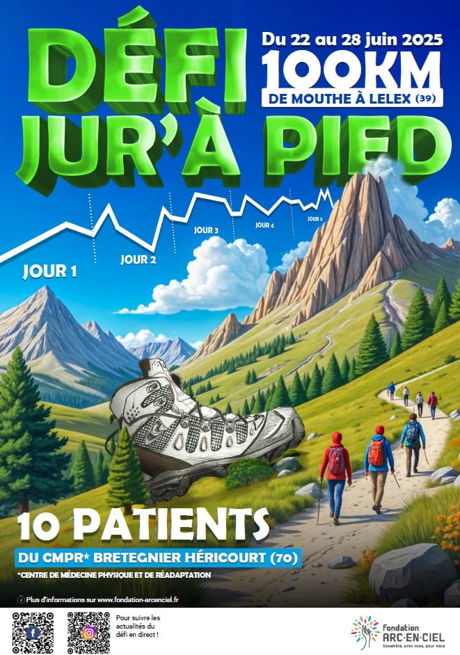 Le CMPR Bretegnier à Héricourt (70) organise un Défi sportif du 22 juin au 28 juin 2025 : Défi Jur’A Pied