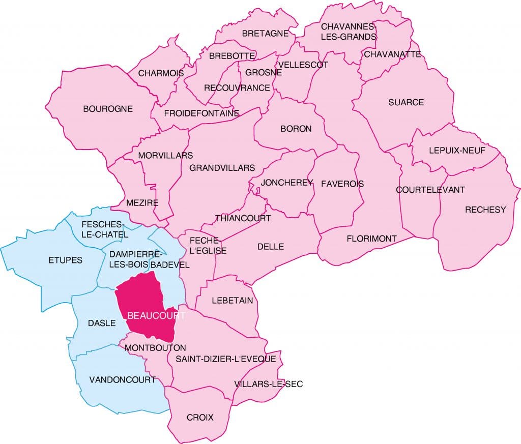 - dans les communes du Doubs et du Territoire de Belfort à proximité de Beaucourt.